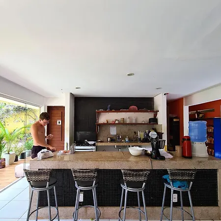 In dieser Unterkunft in Praia de Pipa wird täglich ein einfaches Frühstück angeboten. Das Restaurant Barraca do pedro bietet südamerikanische Gerichte und liegt in einer Entfernung von 7 Gehminuten von diesem Hostel in Praia de Pipa. Die Unterkunft in Praia de Pipa bietet seinen Gästen eine Gemeinschaftsküche. Das Hostel in Praia de Pipa bietet seinen Gästen auch bequeme Essensdienste, wie einen Einkaufsservice. Der Busbahnhof para Madeiro & Goianinha ist in fußläufiger Entfernung vom Hostel gelegen. Zum Unterhaltungsprogramm gehören Live-Aufführungen und ein Nachtclub.